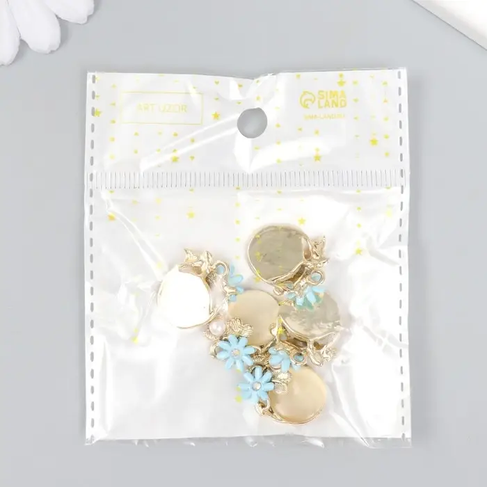Декор для творчества металл "Кошачий глаз с незабудкой" жемчужина, золото 0,8х2х2,1 см