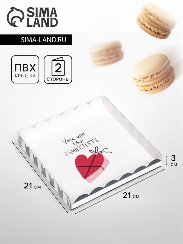 Коробка для печенья, кондитерская упаковка с пластиковой крышкой, «8 марта», 21×21×3 см