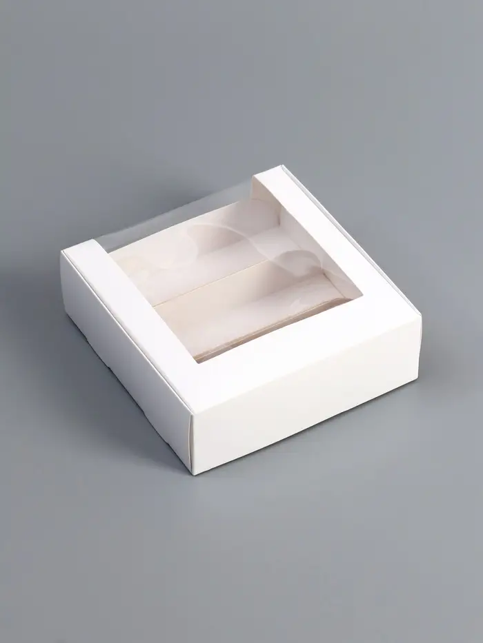 - Для кондитерских и пекарен: Коробка подходит для розничной продажи выпечки. Белый цвет — нейтральный фон, на который легко клеить логотипы, наклейки, ставить штампы с названием и ценой. Покупатель сразу видит количество изделий.