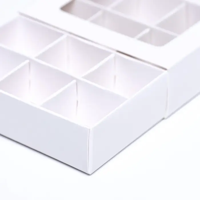 - Гарантированная сохранность каждого изделия: Тонкие, но прочные перегородки надёжно фиксируют конфеты, шоколадные плитки или трюфели. Это предотвращает их повреждение при транспортировке и сохраняет индивидуальность каждого вкуса.