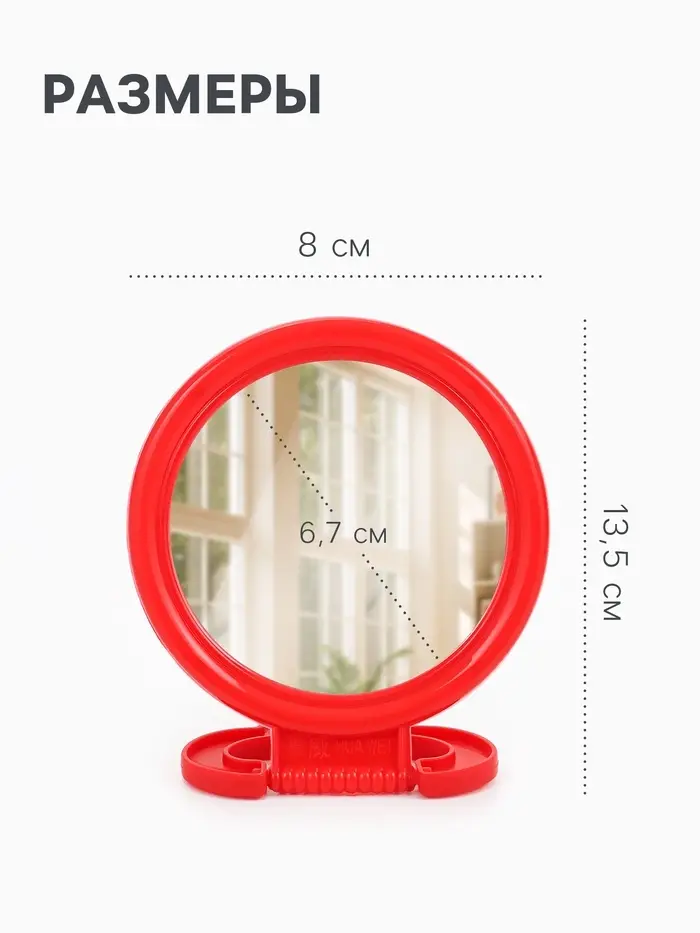 Компактное круглое зеркало с подставкой и возможностью подвешивания сочетает практичность и универсальность. Размер зеркальной поверхности 6,7 см подходит для повседневного использования в спальне, ванной или гостиной. Разноцветная пластиковая рама добавляет яркий акцент и вписывается в разные интерьерные решения.