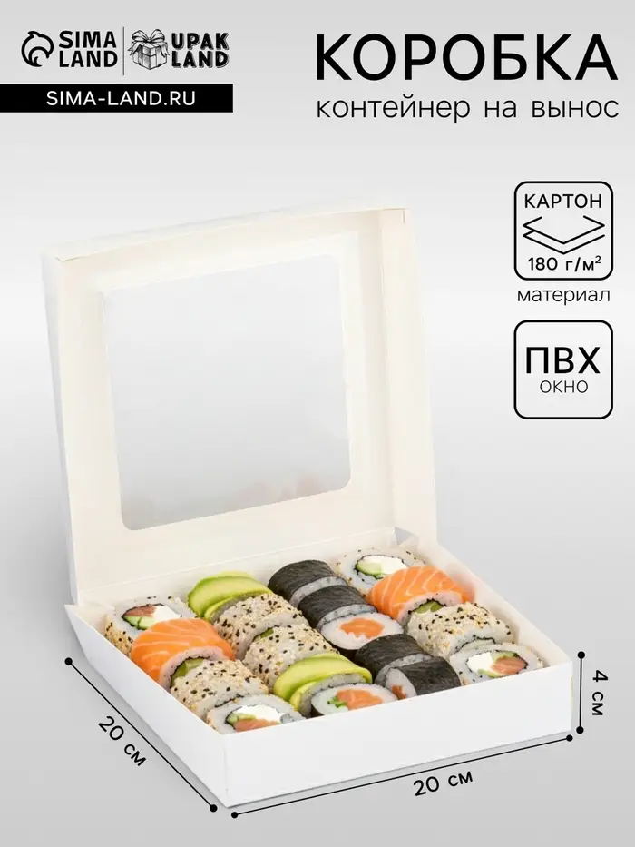 Контейнер навынос, с окном, белый, 20×20×4 см