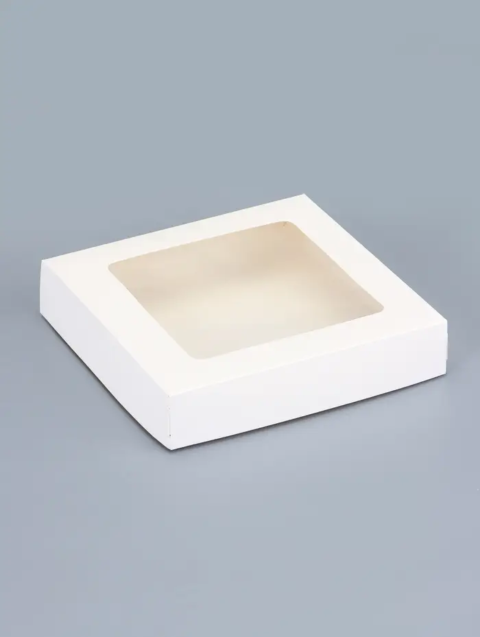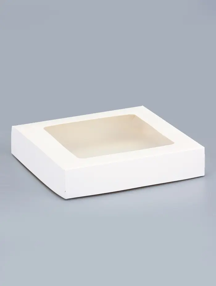 Идеальная форма для ваших десертов! Белые контейнеры с окошком 20×20×4 см — это квадратная упаковка для кондитерских изделий. Классический белый цвет и прозрачное окно создают нейтральный фон, который подчеркивает содержимое.