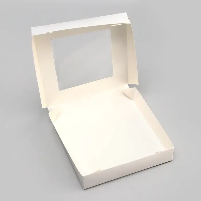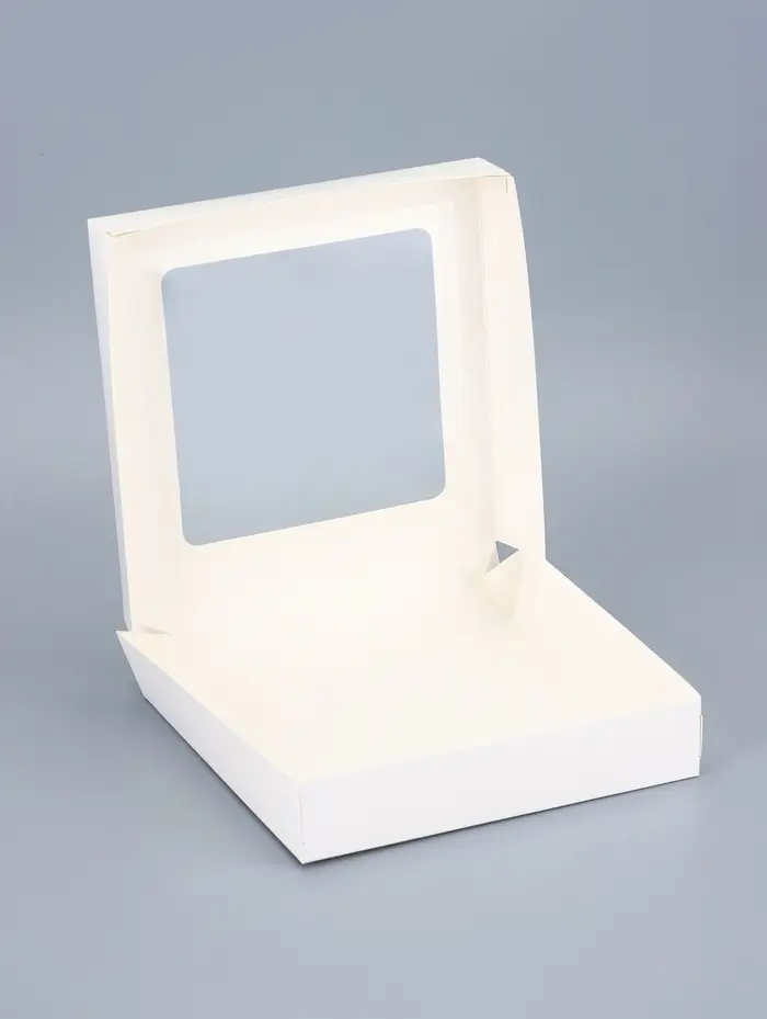 - Прозрачное окно для демонстрации десертов: Через окошко видно содержимое контейнера без вскрытия упаковки. Это сохраняет свежесть продуктов и показывает их оформление — крем, глазурь, украшения остаются защищёнными, но доступными для обзора.