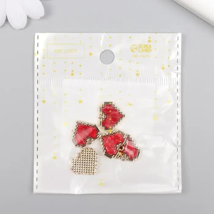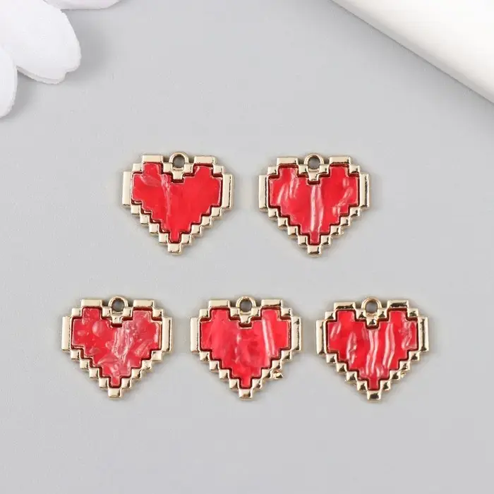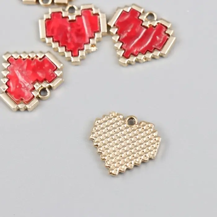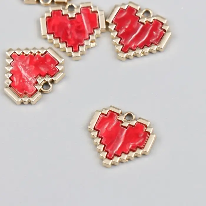 Металлический элемент, декоративная подвеска «Арт Узор. Красное сердце. Пиксели», эмаль, золото, 0.2×1.6×1.5 см