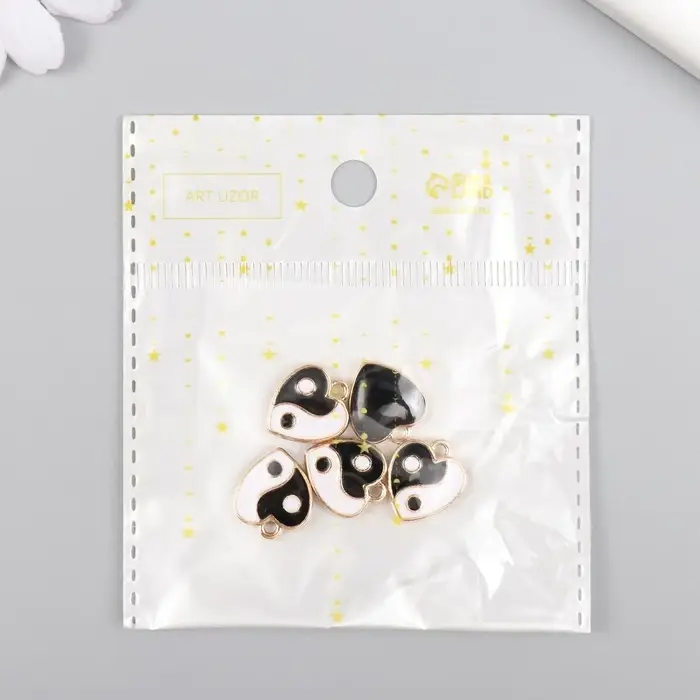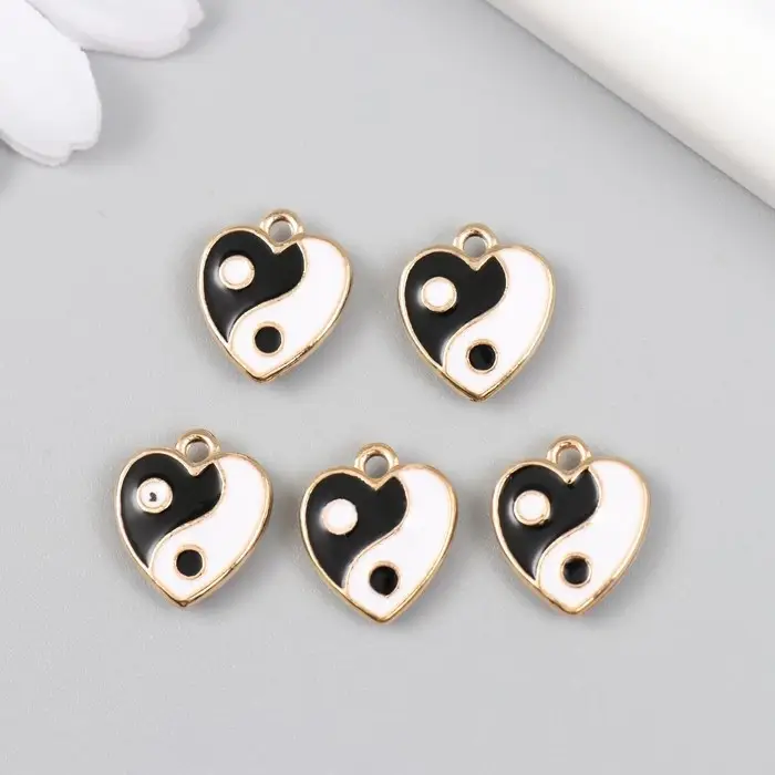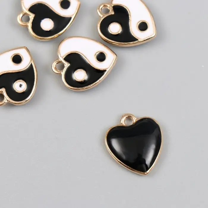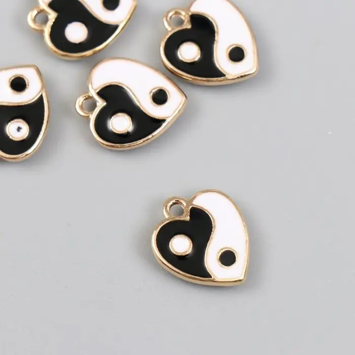 Металлический элемент, декоративная подвеска «Арт Узор. Сердце инь-ян», эмаль, золото, 0.3×1.4×1.6 см