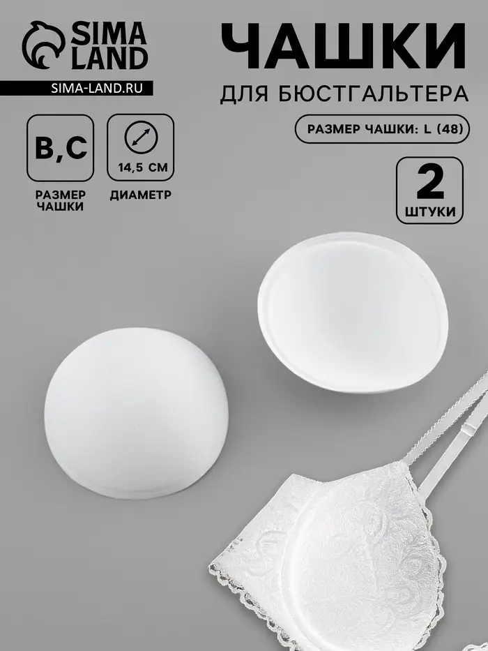 Чашки для бюстгальтера «Круг», L (48), d=14.5 см, пара, белые