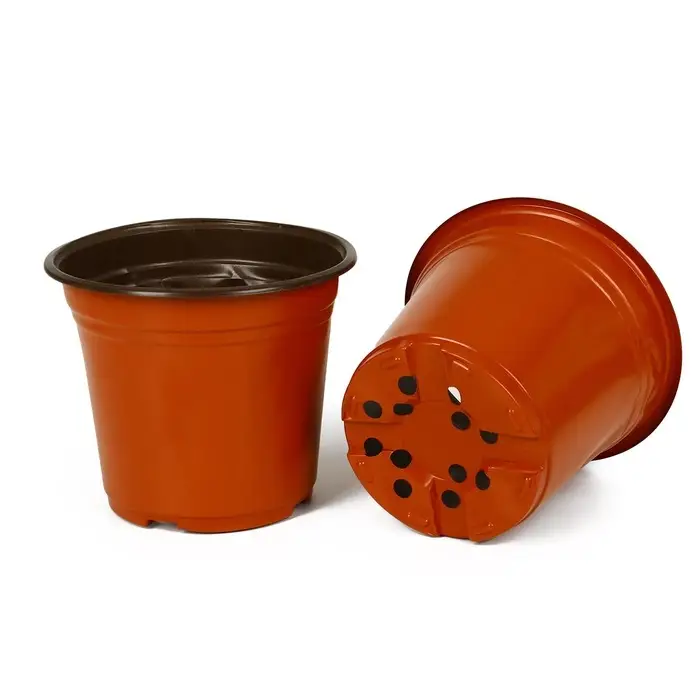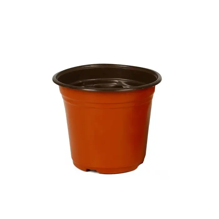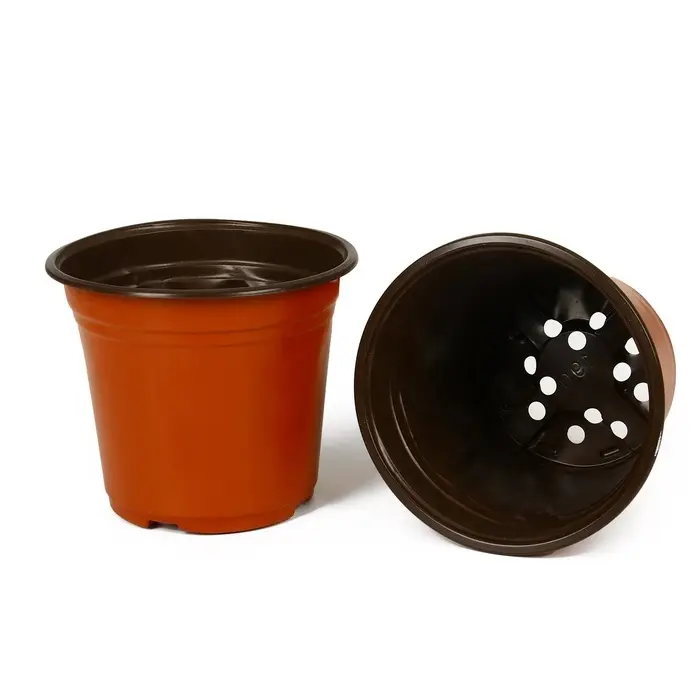 - Мягкий пластик: изготовлен из гибкого пластика коричневого цвета, который сохраняет форму и устойчив к нагрузкам. Долговечность позволяет использовать горшок в течение нескольких сезонов.