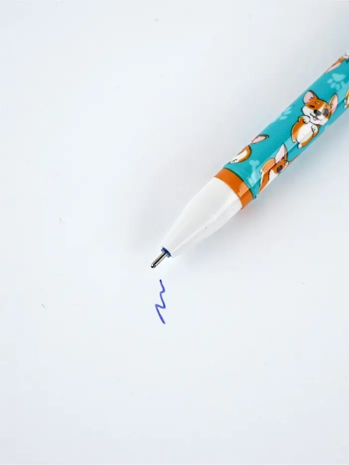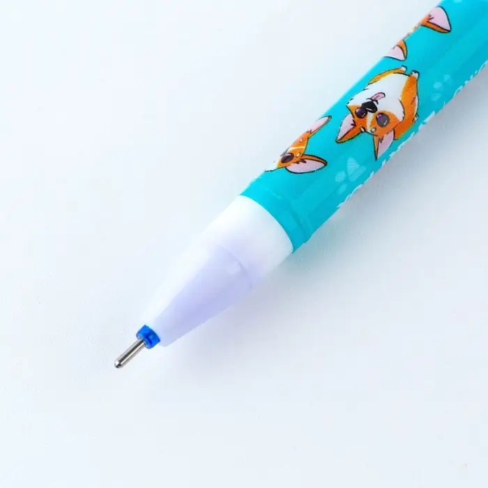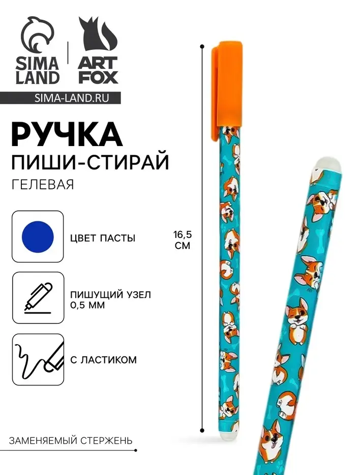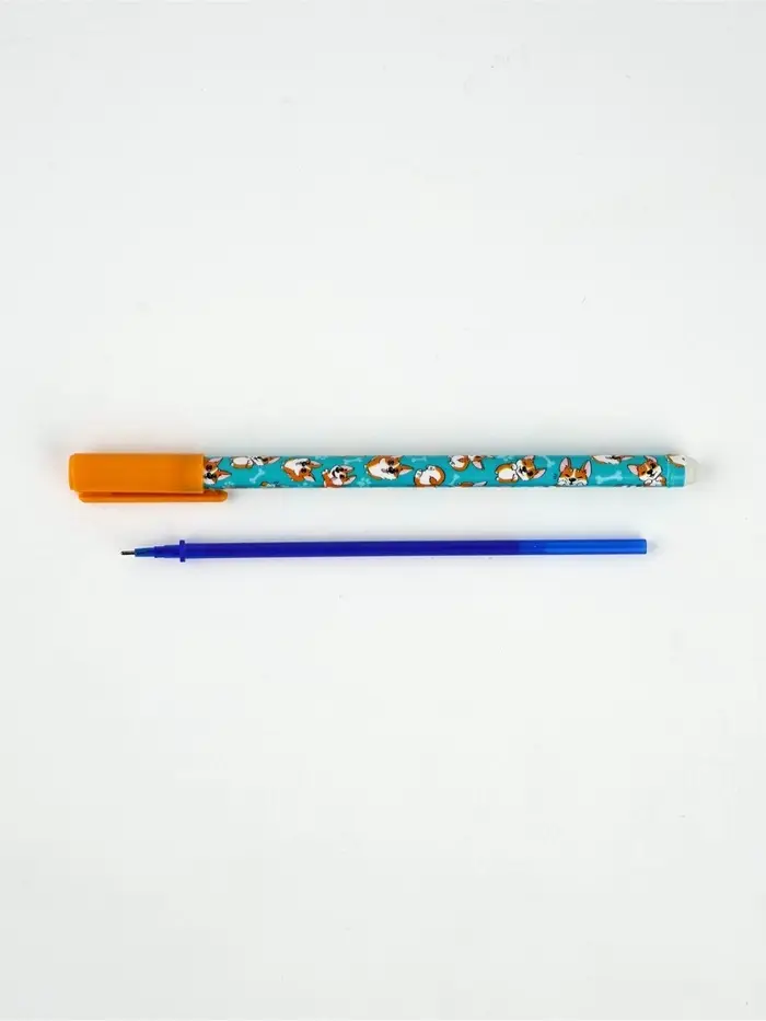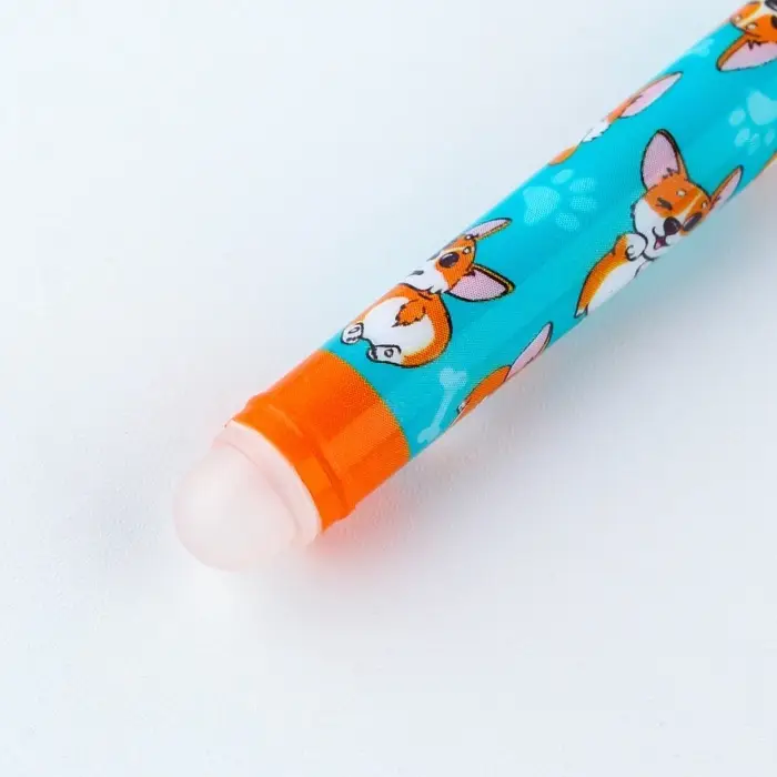 Ручка пластик пиши-стирай с колпачком «Корги», синяя паста, гелевая 0.5 мм
