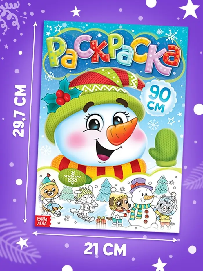 Раскраска новогодняя детская «Снеговик», 90 см