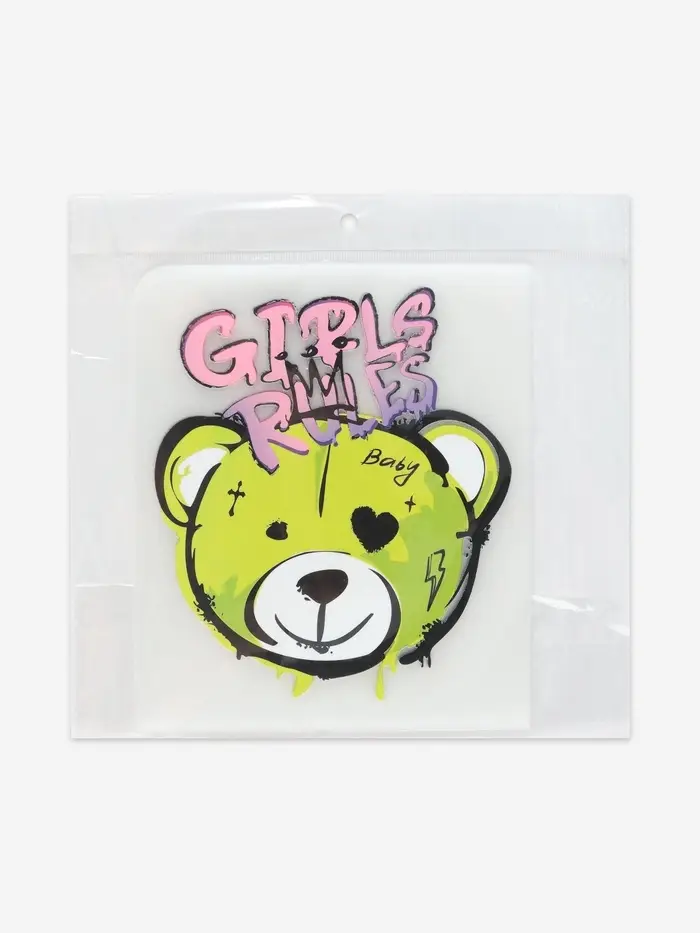 Использование этой термонаклейки помогает придать комнате вещам характер и выразительность. Она легко крепится к поверхности без необходимости использования сложных инструментов. Такой элемент станет стильным дополнением интерьера, подчеркивающим индивидуальность девочки и её интерес к уличному искусству и современному дизайну.