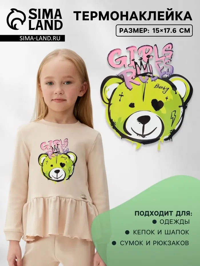 Эта декоративная термонаклейка для одежды с ярким дизайном для девочек станет отличным украшением. Размер 15×17.6 см позволяет легко разместить её на сумке, шоппере или футболке, создавая динамичную и стильную атмосферу.