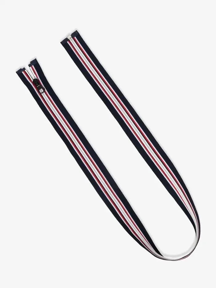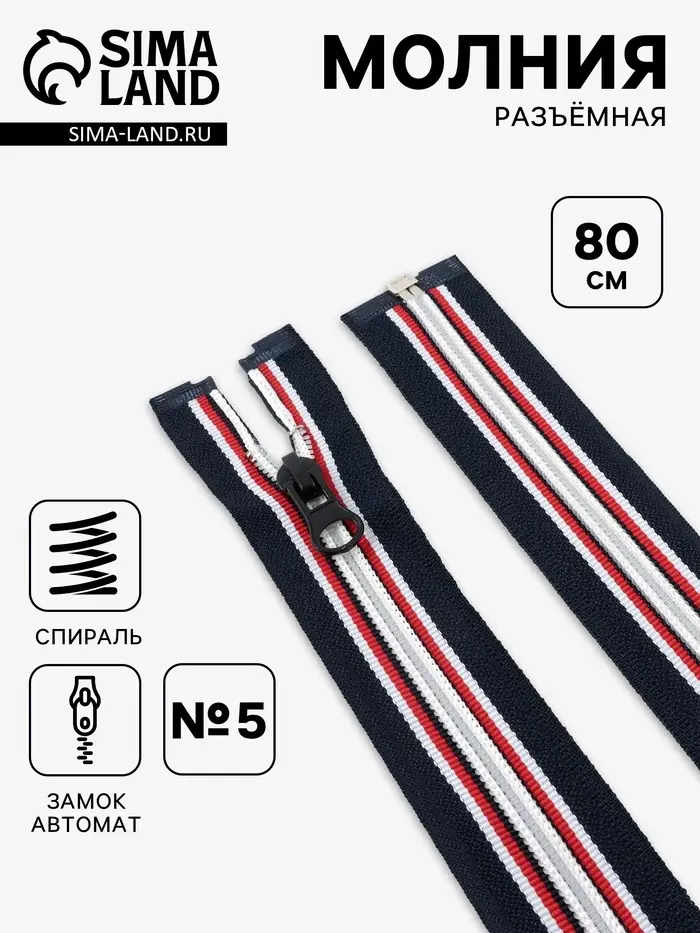 Молния «Спираль», №5, разъёмная, замок автомат, 80 см, тёмно-синяя, красный, белый