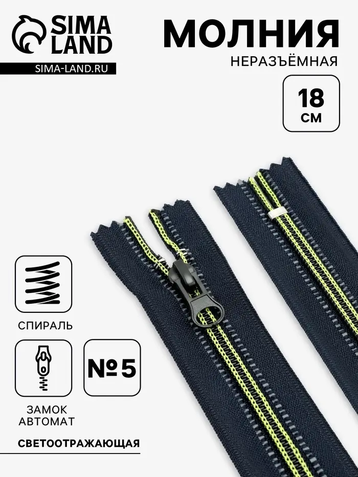 Молния «Спираль», №5, неразъёмная, светоотражающая, замок автомат, 18 см, чёрная, зелёная
