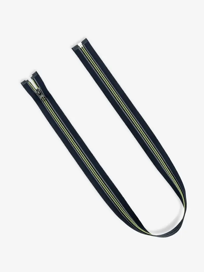 Бегунок плавно перемещается по зубчикам. Молния является разъёмной — замочек на конце полностью расстёгивается. Номер обозначает ширину зубчиков в миллиметрах. Чаще всего такую застёжку используют для шитья толстовок, спортивных вещей, туристического снаряжения и многого другого.