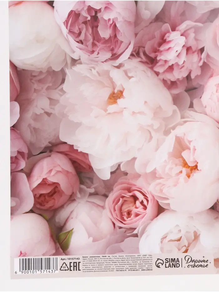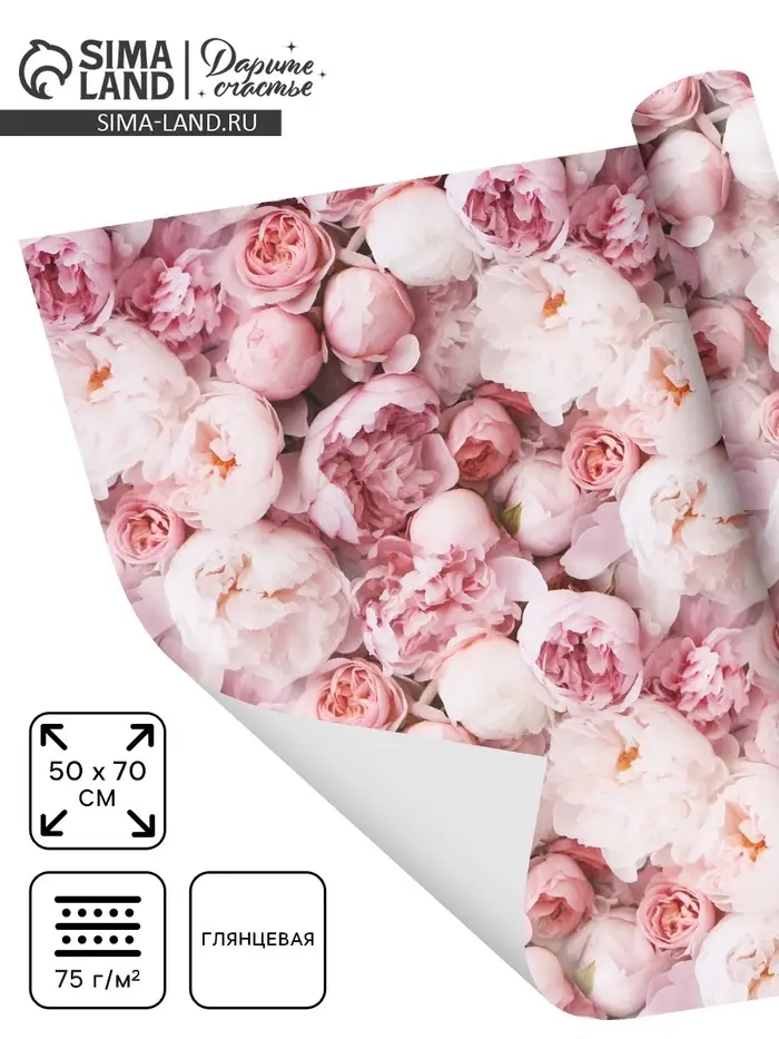 Бумага упаковочная, глянцевая «Весенний букет пионов», 70×50 см