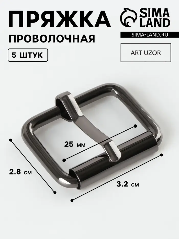 Пряжка проволочная, 3.2×2.8 см, 25 мм, 5 шт., цвет чёрный никель