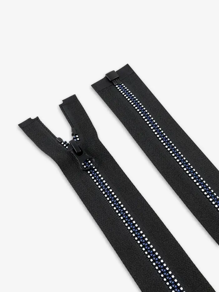 Пластиковые зубцы не истираются. Конструкция износостойкая, не выцветает. Бегунок плавно скользит по застёжке.