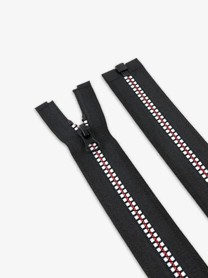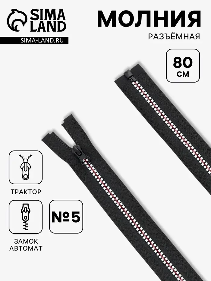 Молния «Трактор», №5, разъёмная, замок автомат, 80 см, чёрная, белая, красная