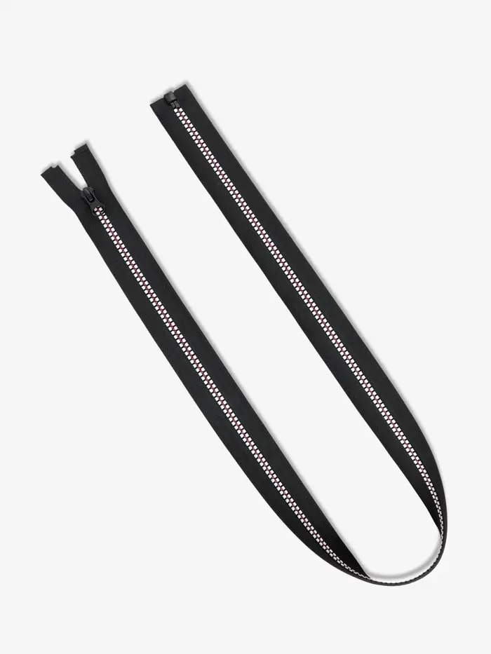 Пластиковые зубцы не истираются. Конструкция износостойкая, не выцветает. Бегунок плавно скользит по застёжке.