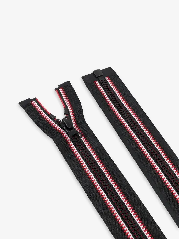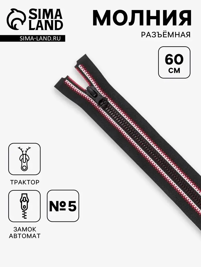 Молния «Трактор», №5, разъёмная, замок автомат, 60 см, чёрная, красная, белая
