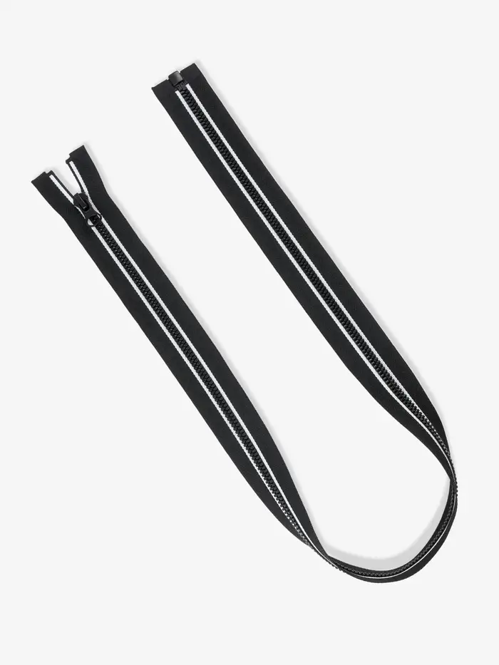 Молния «Трактор», №8, разъёмная, замок автомат, 80 см, с белыми полосами, чёрная