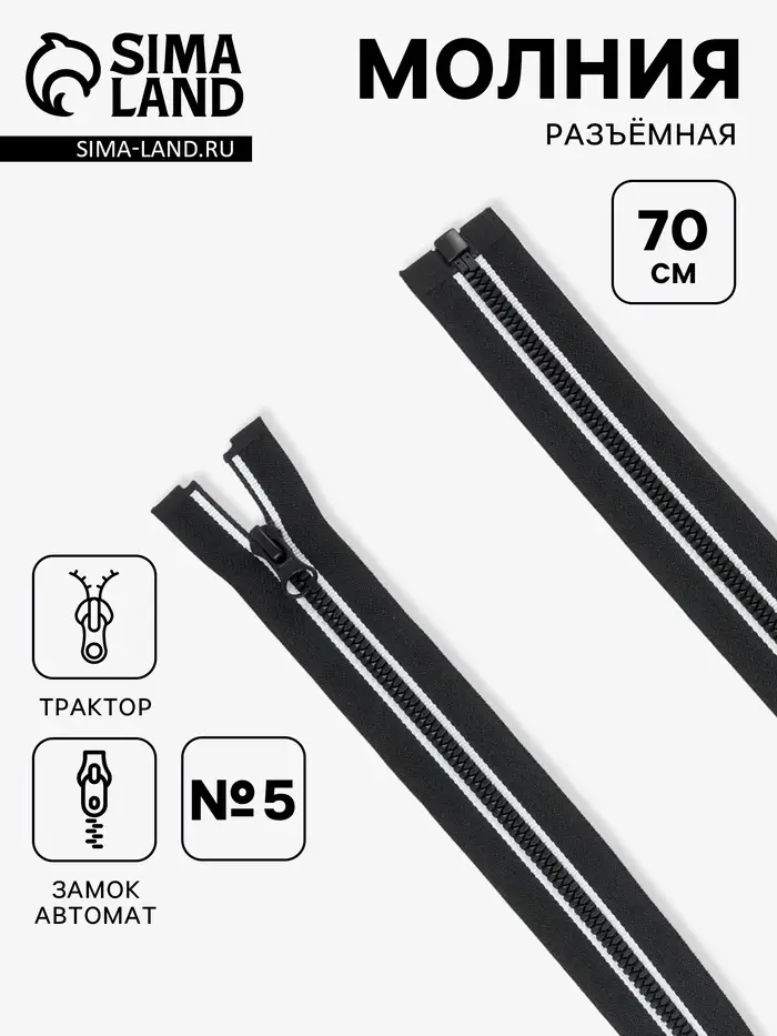 Молния «Трактор», №5, замок автомат, разъёмная, 70 см, чёрная