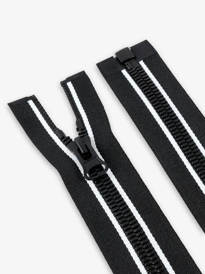 Номер молнии обозначает ширину зубчиков в миллиметрах. Широко используется шитье толстовок, курток, и т.п.
