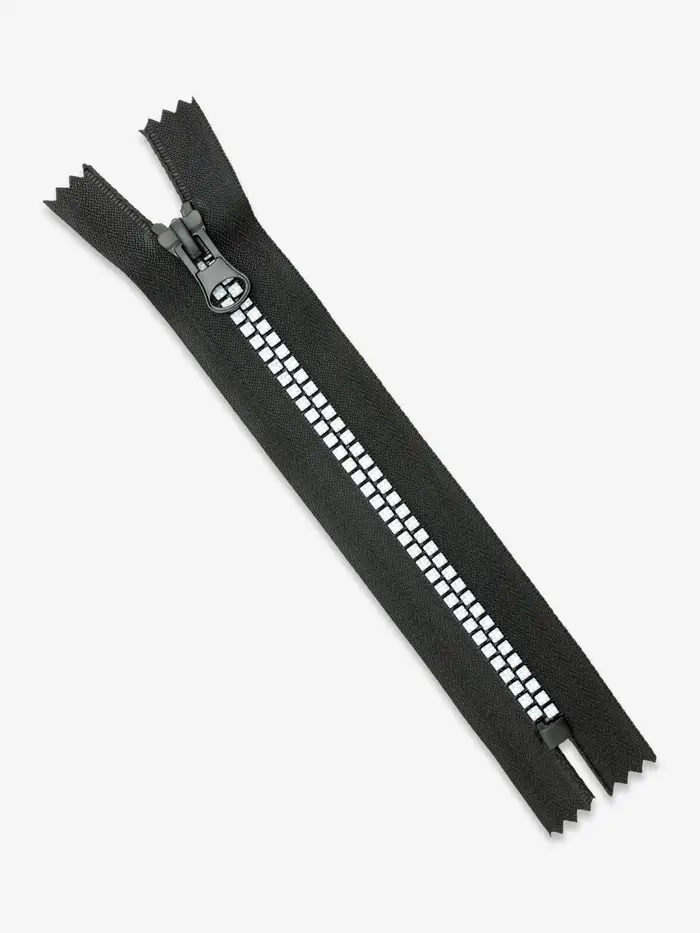 Пластиковые зубцы не истираются. Конструкция износостойкая, не выцветает. Бегунок плавно скользит по застёжке.
