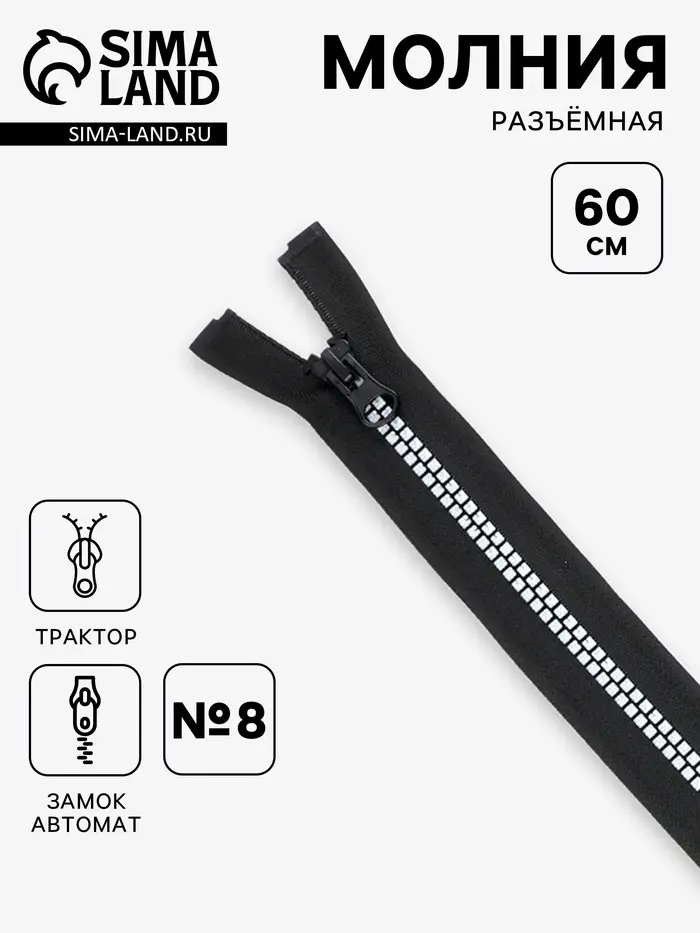 Молния «Трактор», №8, разъёмная, 60 см, замок автомат, чёрная