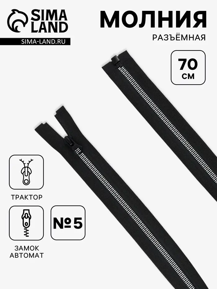 Молния «Трактор», №5, разъёмная, 70 см, замок автомат, чёрная