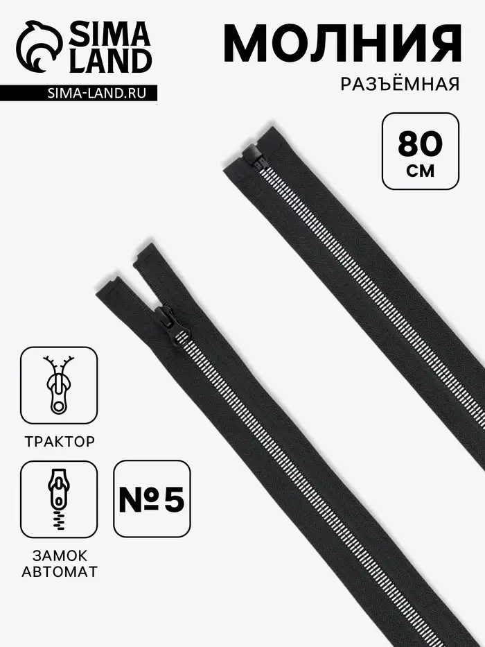 Молния «Трактор», №5, разъёмная, 80 см, замок автомат, чёрная