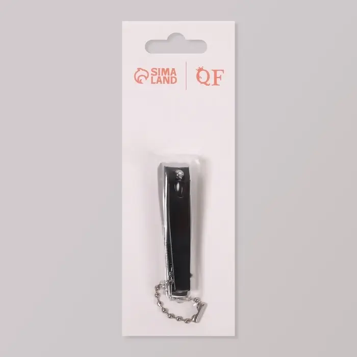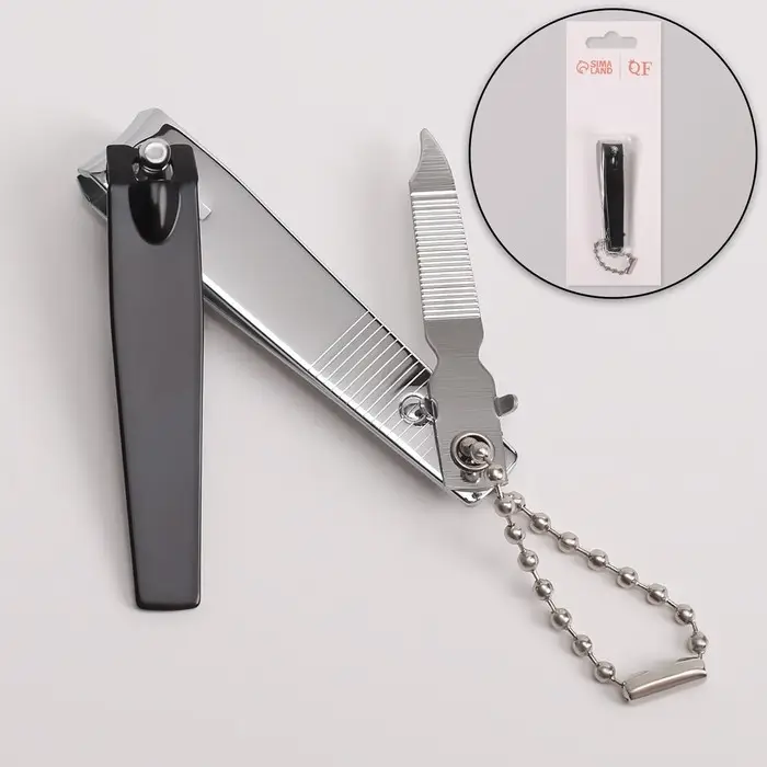 Кусачки книпсер маникюрные, с пилкой, 5.7 см, на блистере, с цепочкой, чёрные, серебристые
