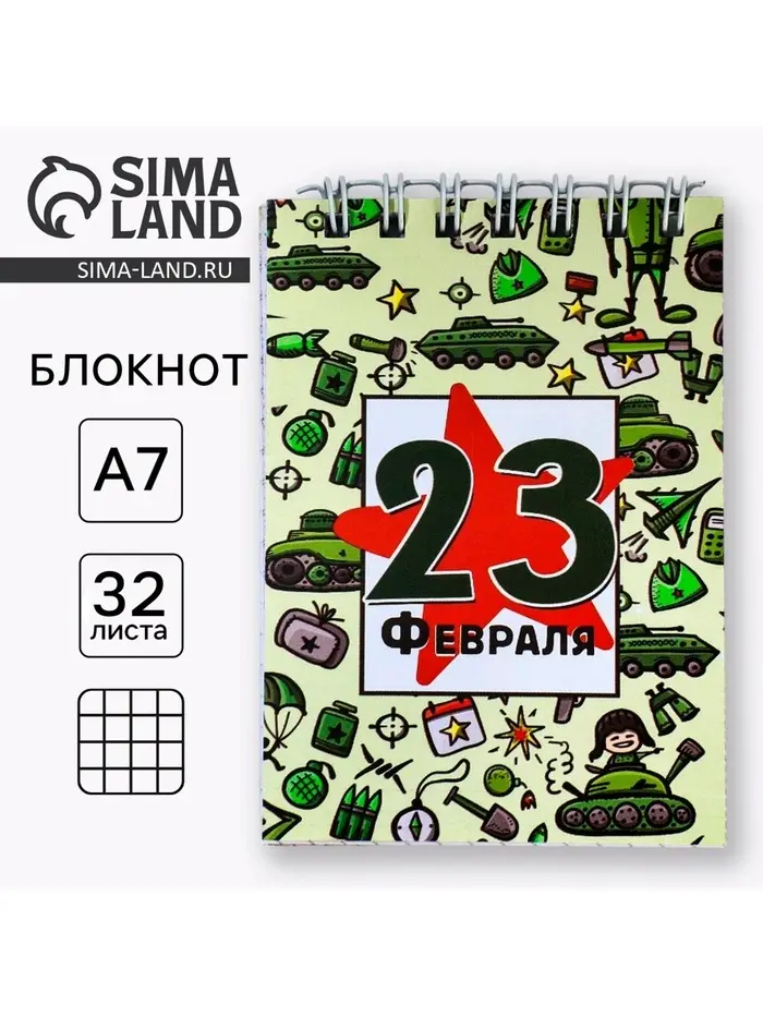 Блокнот А7, 32 л. в мягкой обложке, на гребне «С 23 февраля. Паттерн»