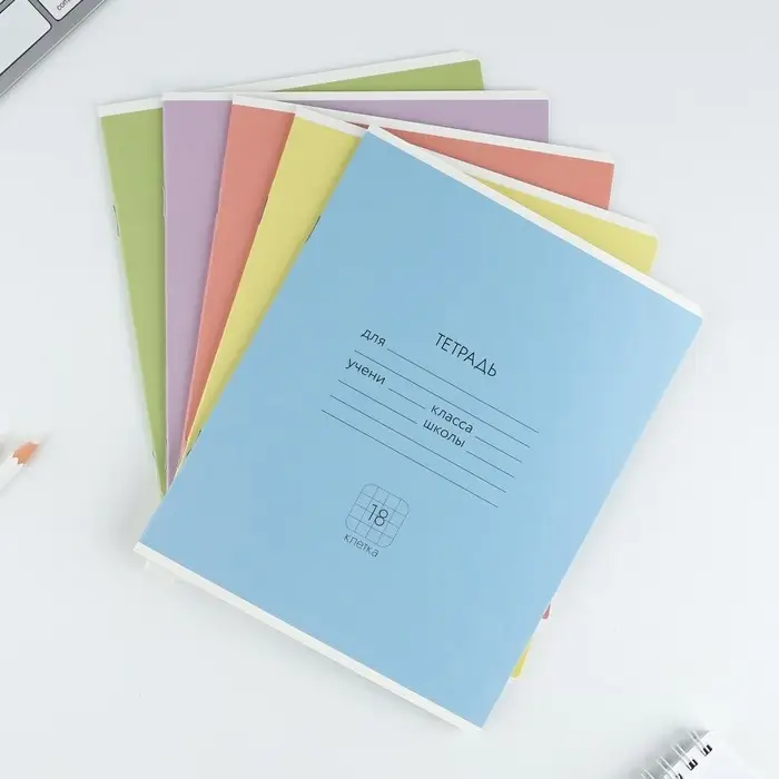 Тетрадь в клетку 18 листов А5, на скрепке «Цветные обложки», обложка мелованный картон, 5 видов МИКС
