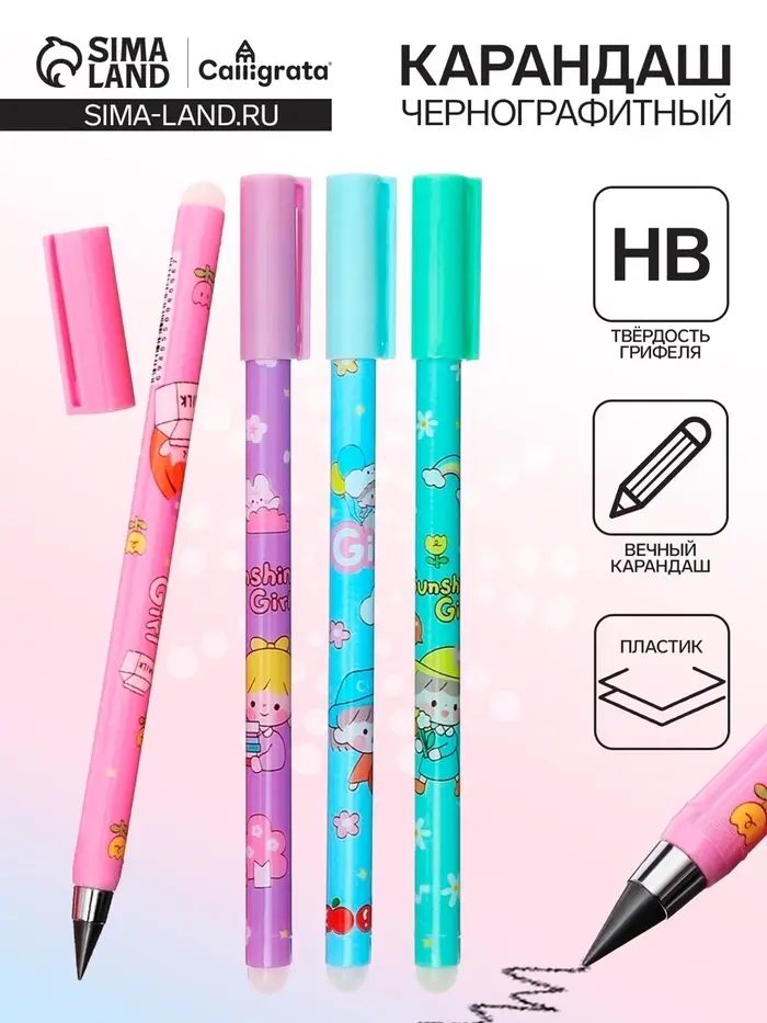 Этот вечный карандаш с милыми рисунками создан для того, чтобы учёба и работа проходили с улыбкой. Он объединяет практичные преимущества — утолщённый корпус, грифель, который не нужно точить, и ластик под рукой — с очаровательным дизайном, который поднимает настроение.