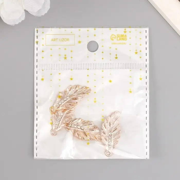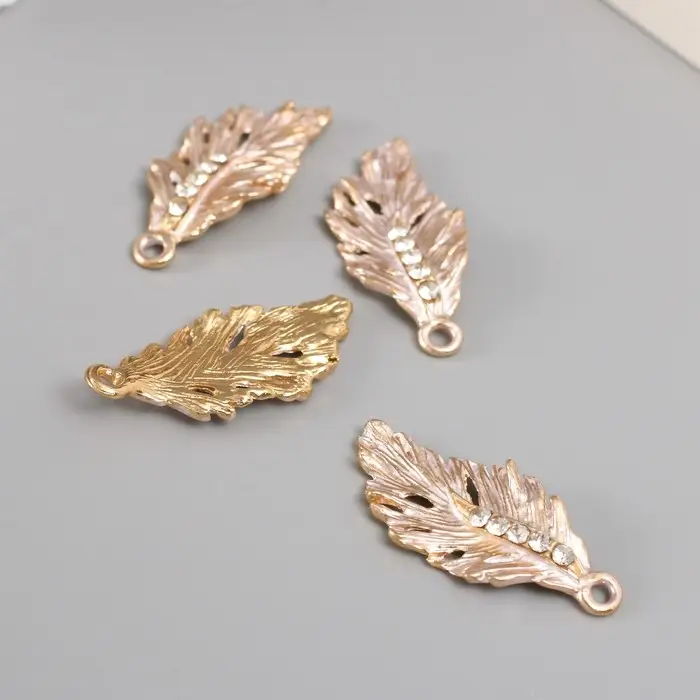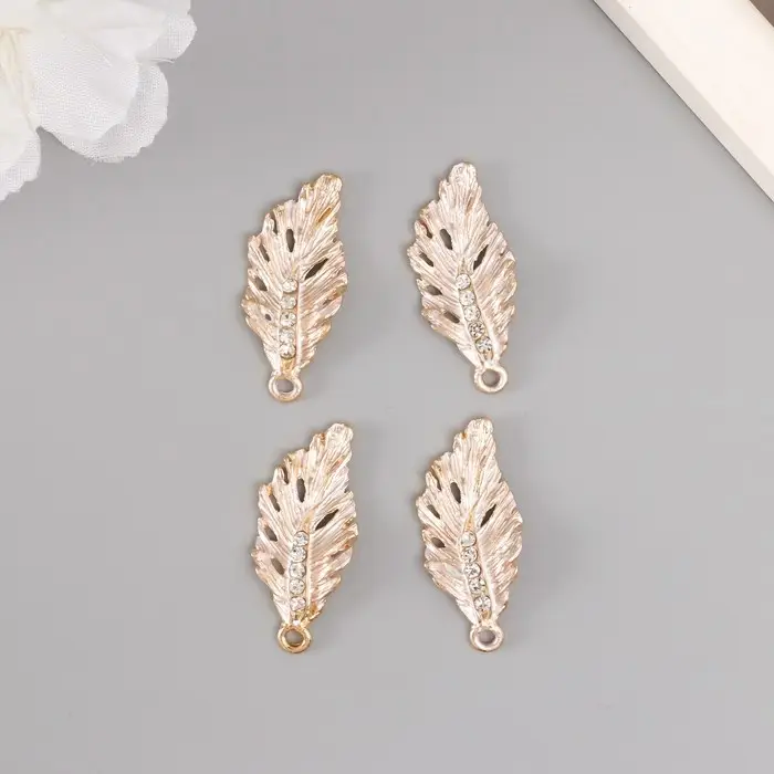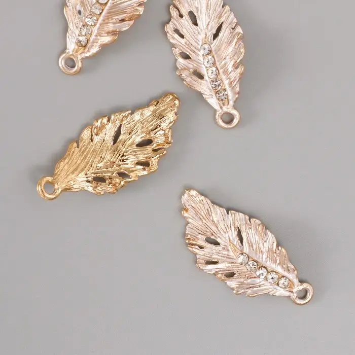 Декор для творчества металл, стразы "Пальмовый лист" 3х1,5 см