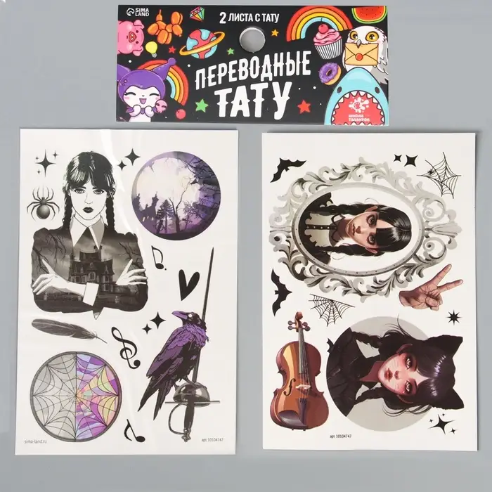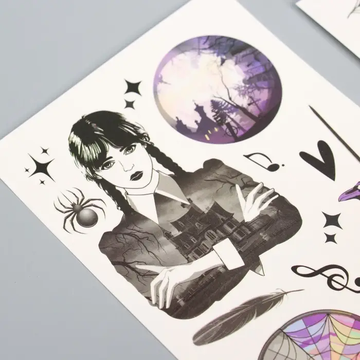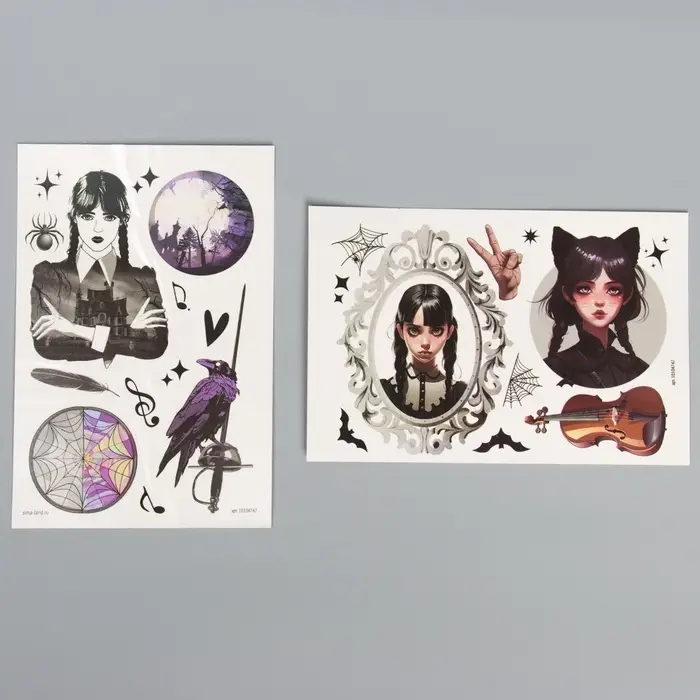 Переводные татуировки детские на хэллоуин «Мрачная история», 2 листа, тату — 23 шт.