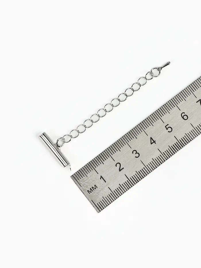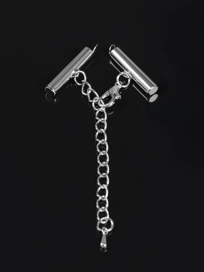 Концевик для браслета из бисера (пара) 20 мм, с цепочкой удлинителем, цвет серебро