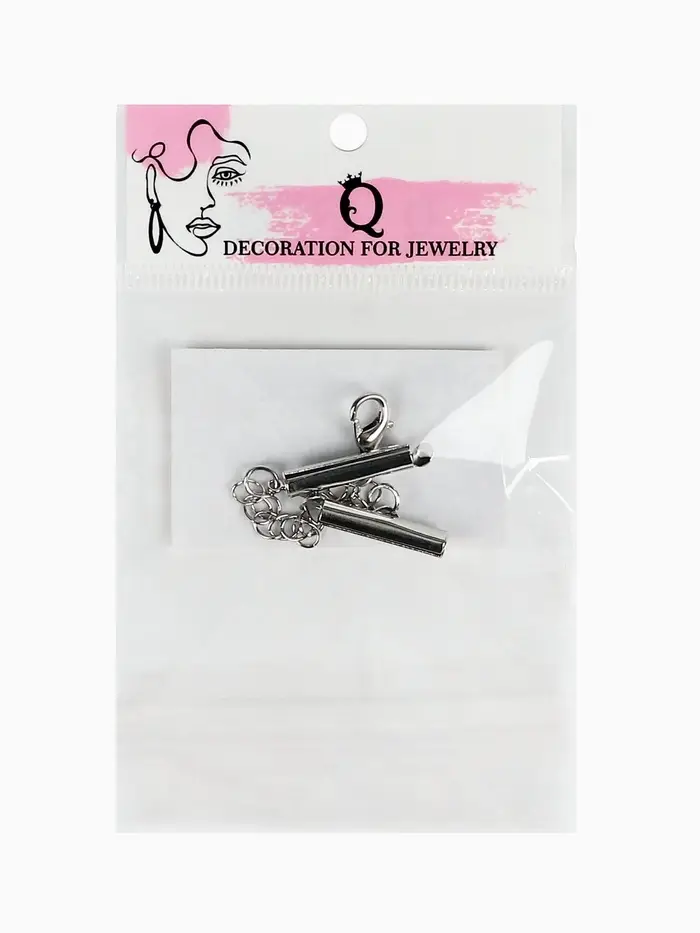 Концевик для браслета из бисера (пара) QF, 10 мм, металл, с цепочкой удлинителем, цвет серебро