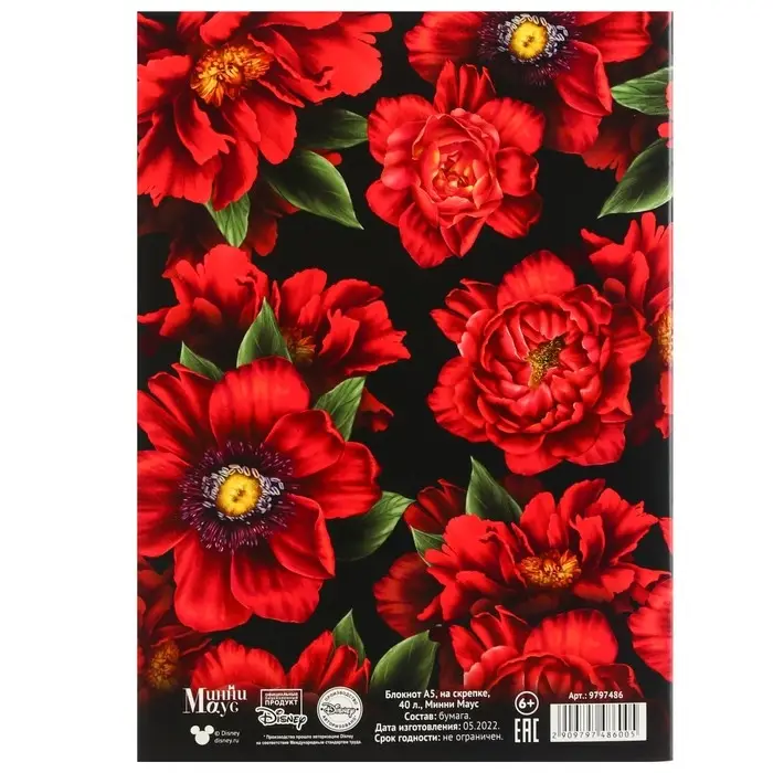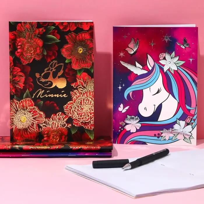 Блокнот А5, 40 листов, на скрепке, в точку, золотое тиснение, «Минни Маус»