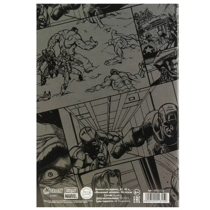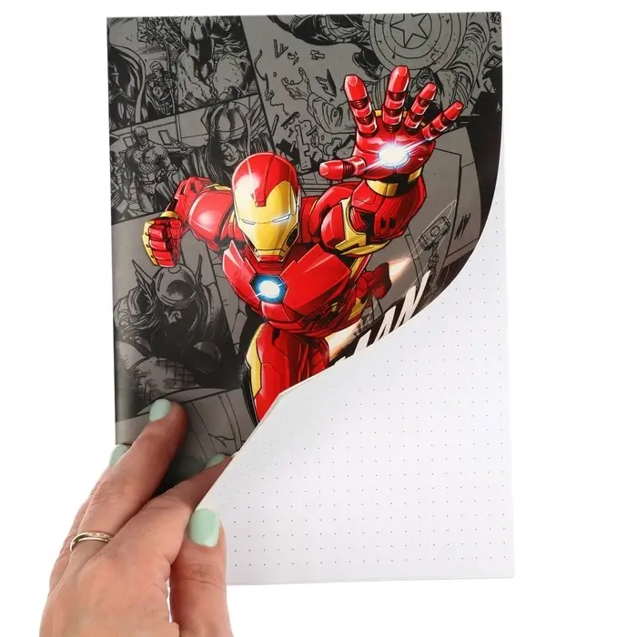 Блокнот А5, 40 листов, на скрепке, в точку, УФ-лак, Железный человек, «Мстители»