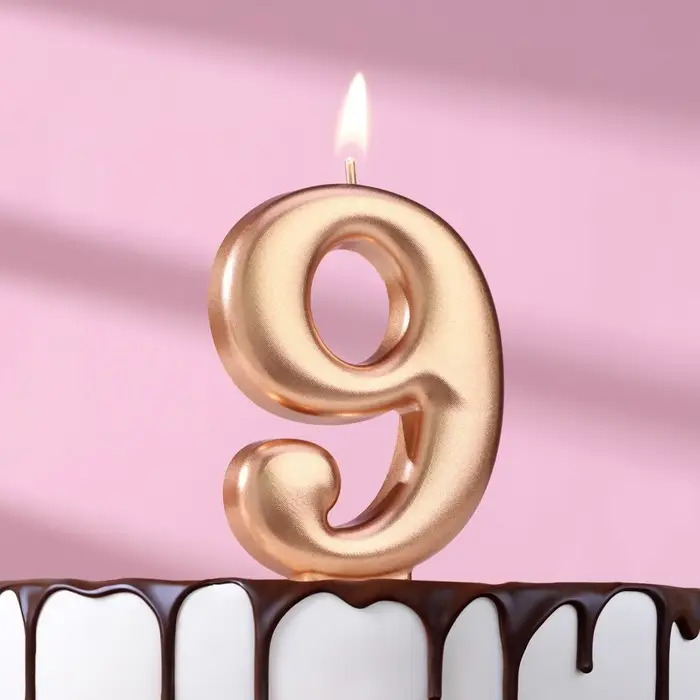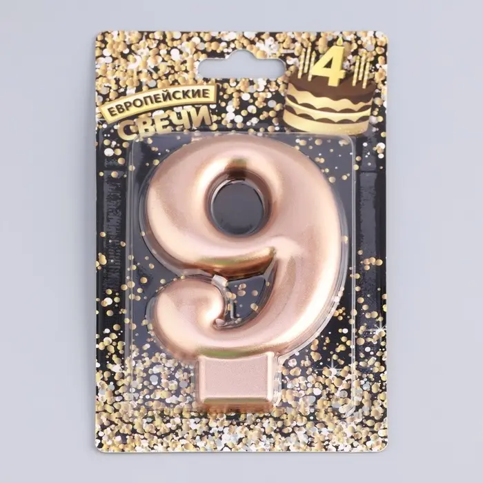 Свеча для торта «Европейская ГИГАНТ», цифра 9, 7 см, розовое золото