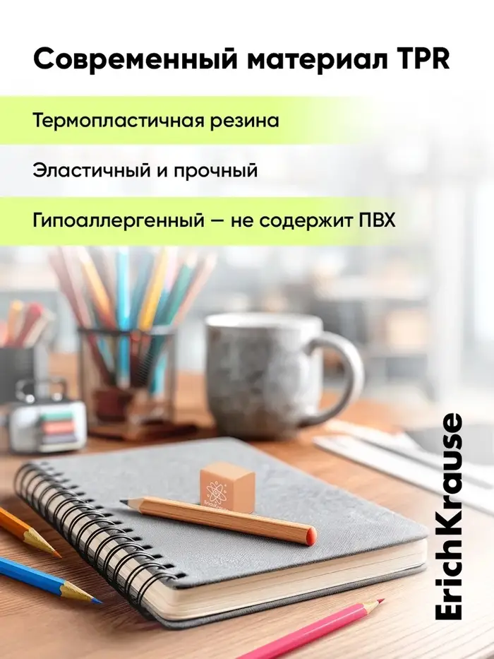 Мягкий ластик квадратной формы из современного, экологически чистого и гипоаллергенного материала термопластичной резины (TPR) с пониженным образованием крошек (Dust free). Не содержит ПВХ. Каждый ластик имеет индивидуальный штрих-код. Размер 22 х 22 х 17 мм.