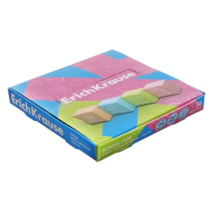 Ластик ErichKrause «School cube», 22×22×17 мм, синтетика, микс