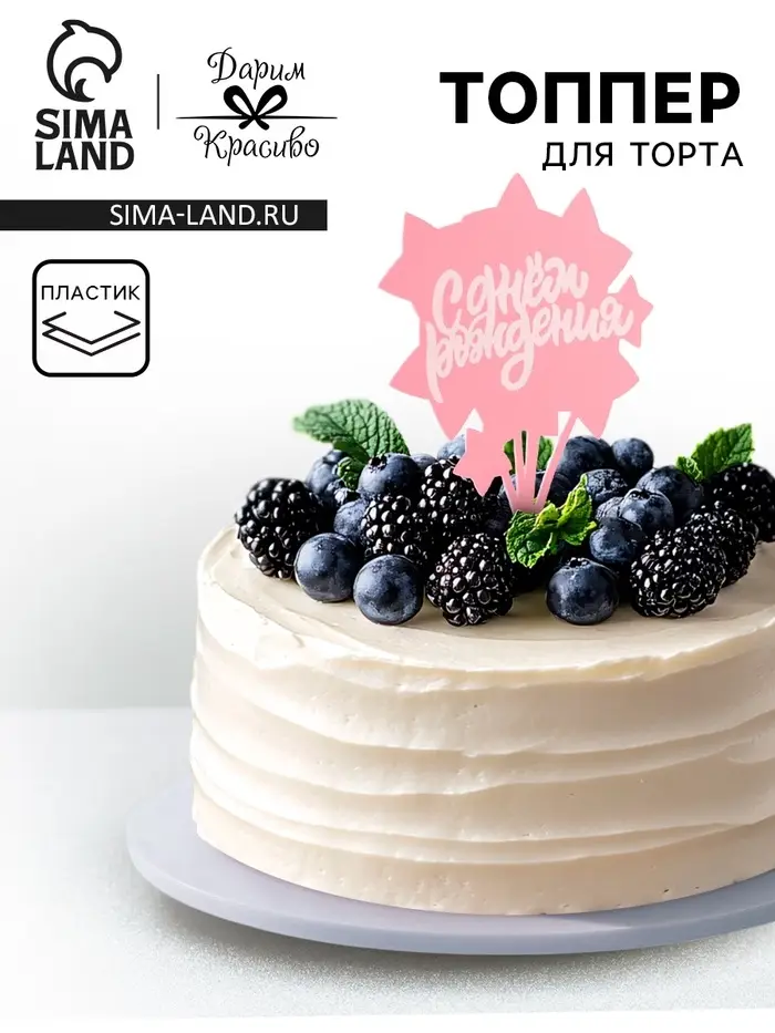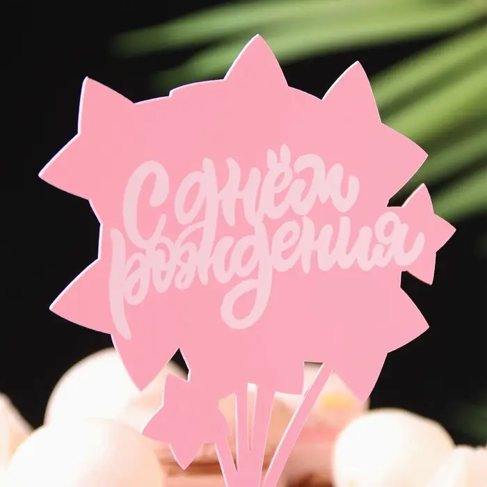 Топпер для торта «С днём рождения», розовый с белым