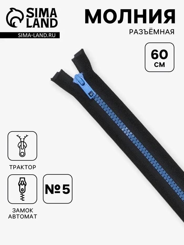Молния «Трактор», №5, разъёмная, замок автомат, 60 см, синяя, красная