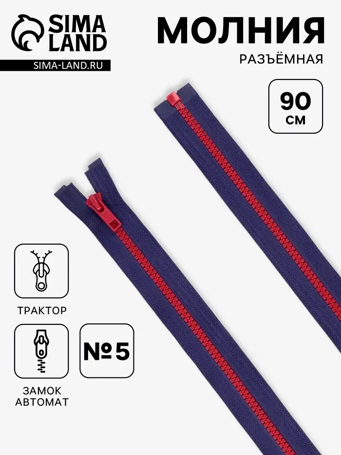Молния «Трактор», №5, разъёмная, замок автомат, 90 см, синяя, красная