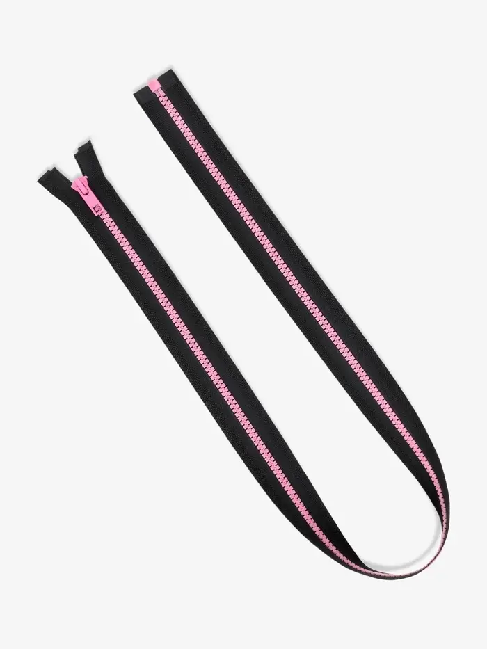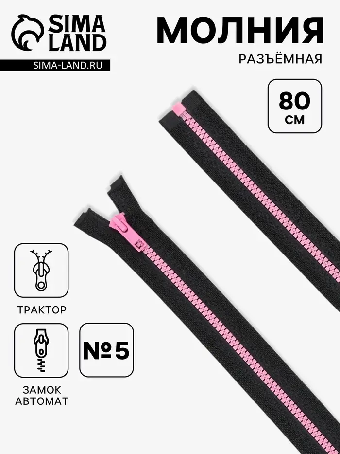 Молния «Трактор», №5, разъёмная, замок автомат, 80 см, чёрная, розовая