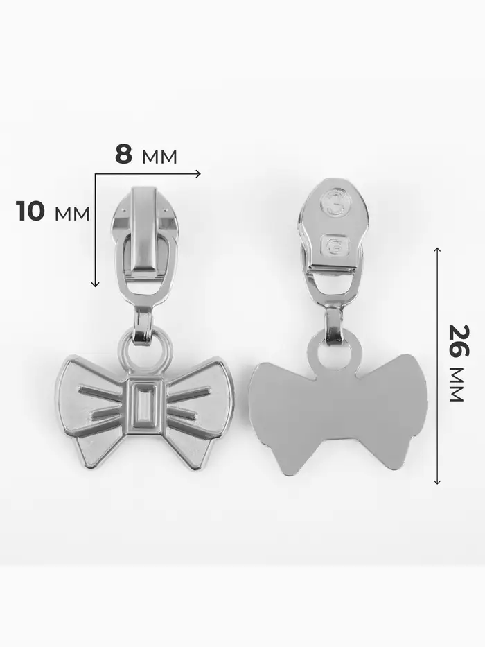 Бегунок для молнии «Спираль», №3, «Бант», 10 шт., цвет никель